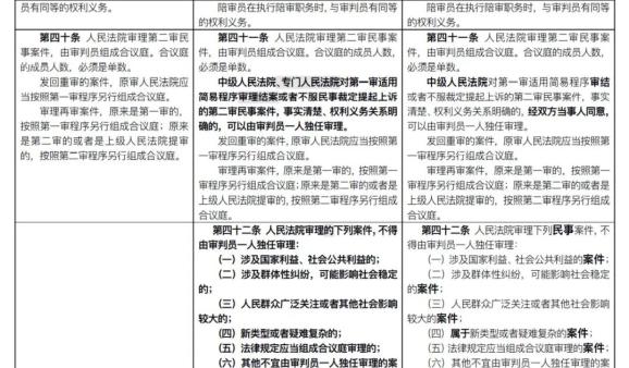 四、增加一条,作为第四十二条:“人民法院审理下列民事案件,不得由审判员一人独任审理: