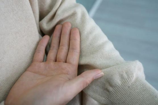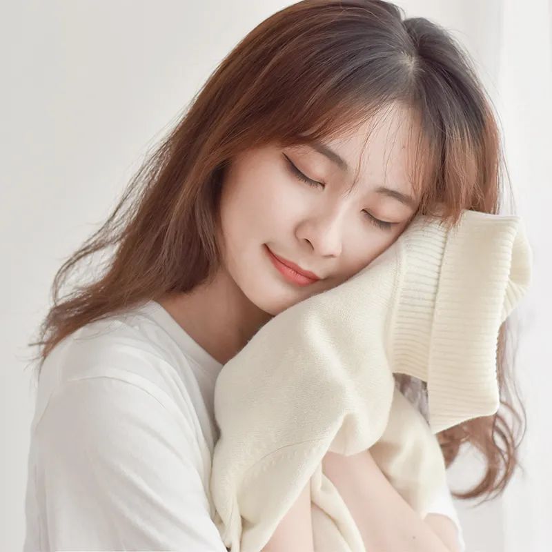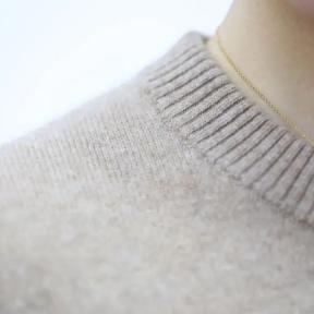 ▲实拍,圆领款拿到手第一感觉,就是真的很软糯,忍不住想贴脸碰碰。即使贴身穿着,也不会有扎人的感受,反而比加保暖内衣更舒服。不过,加一件打底也不错,日常勤换洗打底,可以避免频繁清洗羊绒衫。