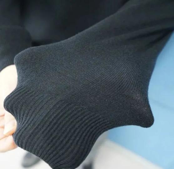 ▲实拍袖口采用紧密针织手法,螺纹收口,不仅美观,保暖锁温效果更好。这样的设计,也是显瘦小心机,对手臂粗的人很友好。