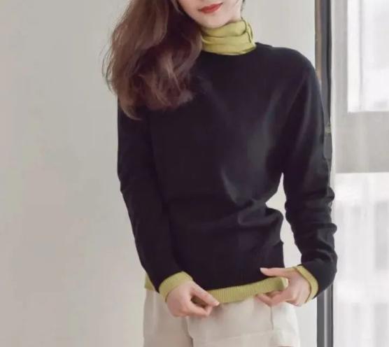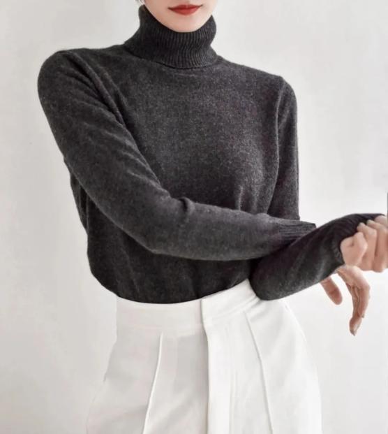 ▲实拍女款高领羊绒衫。搭配裙装、裤装好看又保暖女款羊绒衫