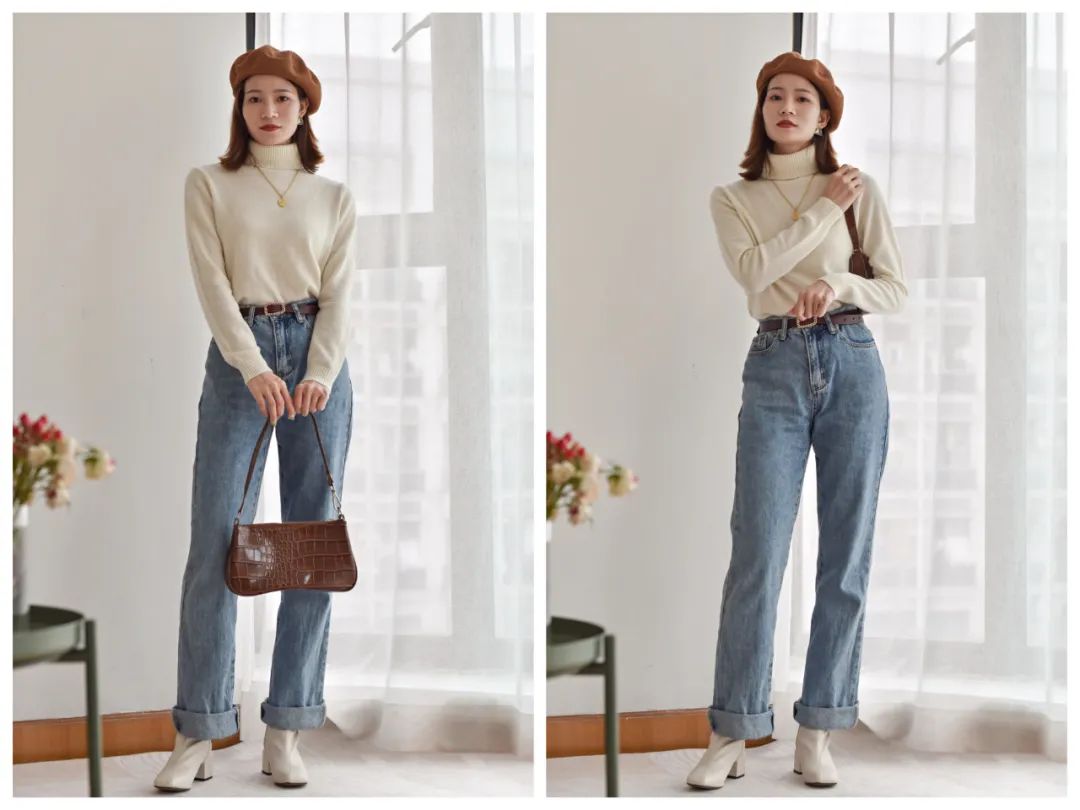 恰到好处的半高领,既保暖,又可以修饰颈部线条。