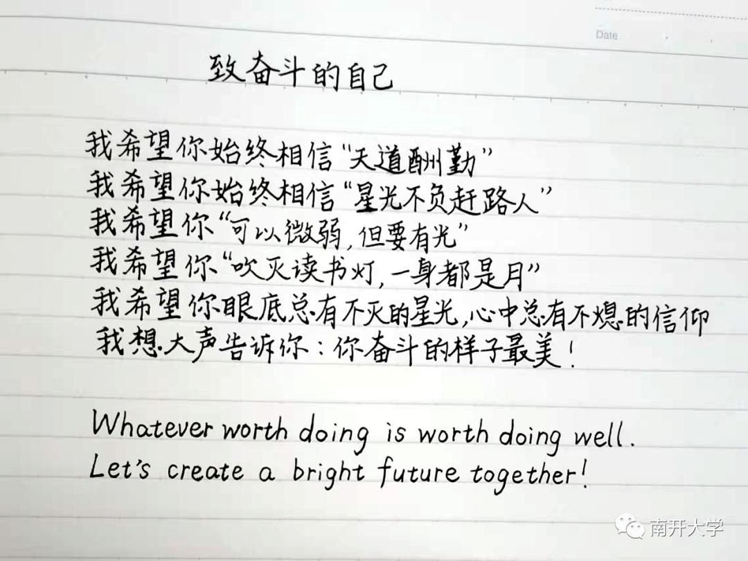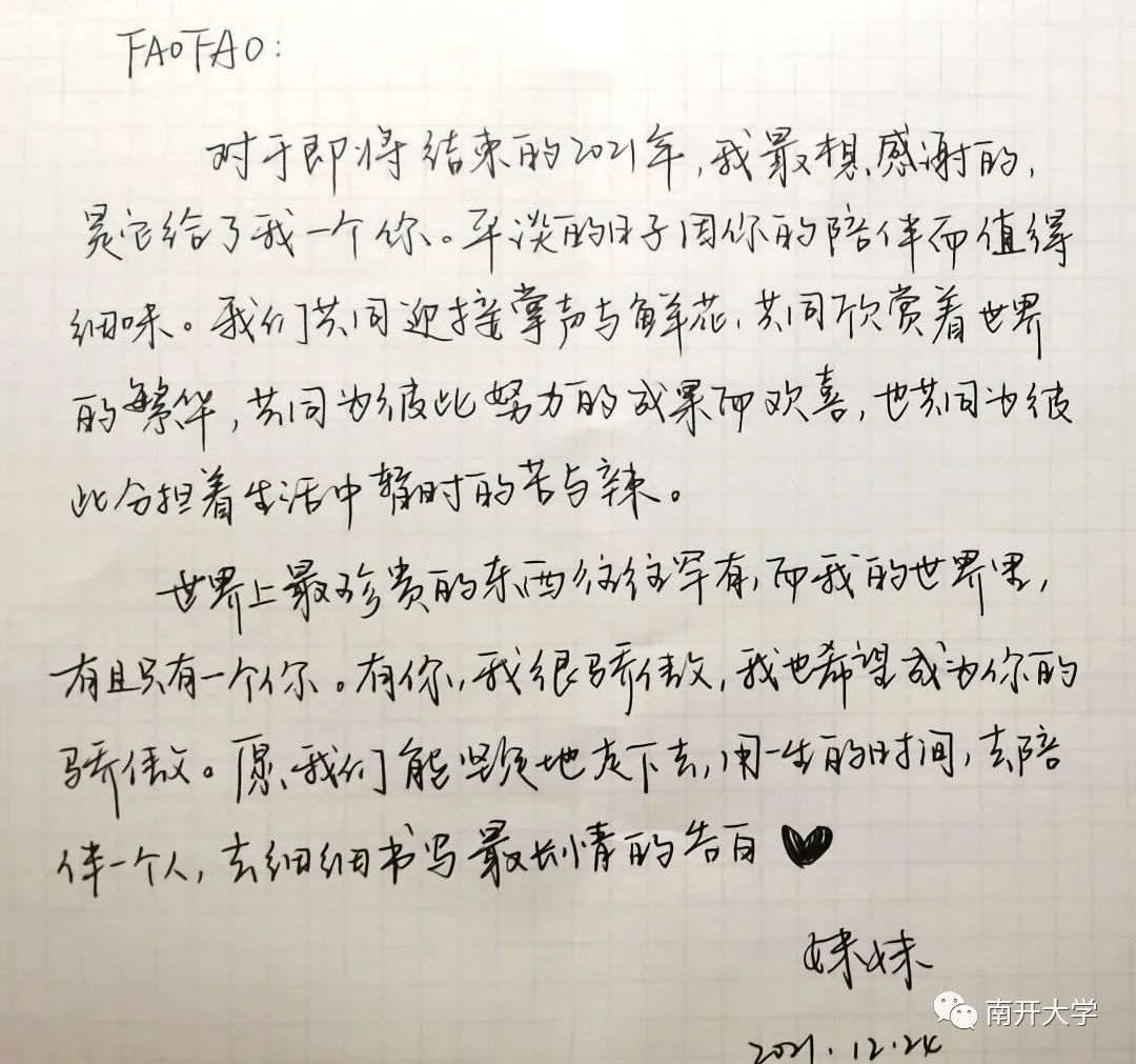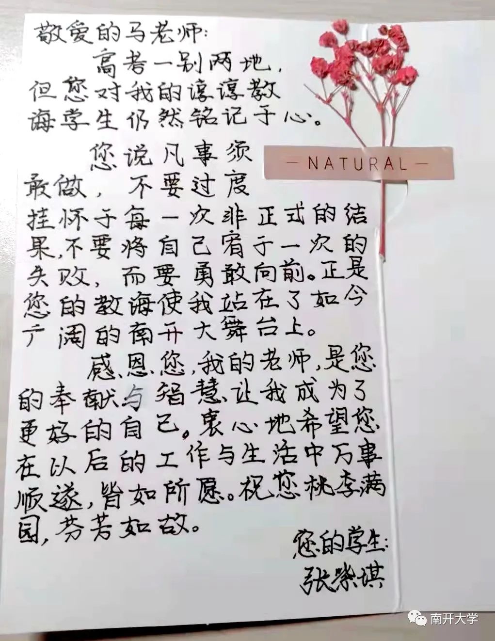 ——汉语言文化学院2018级本科生 孙琦致南开大学