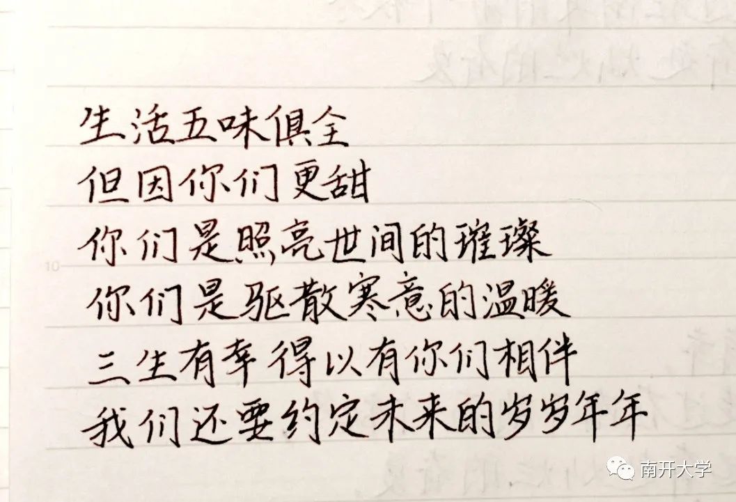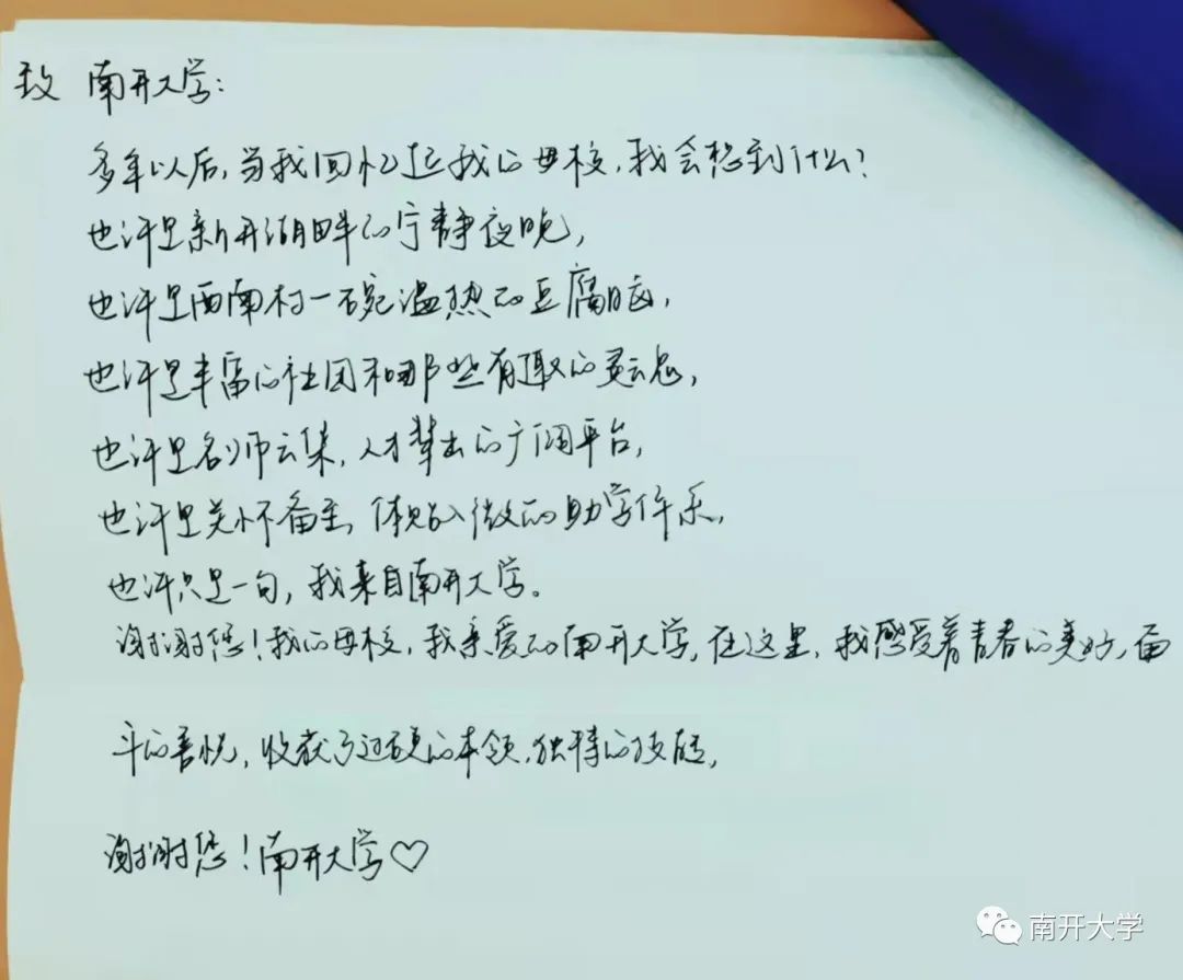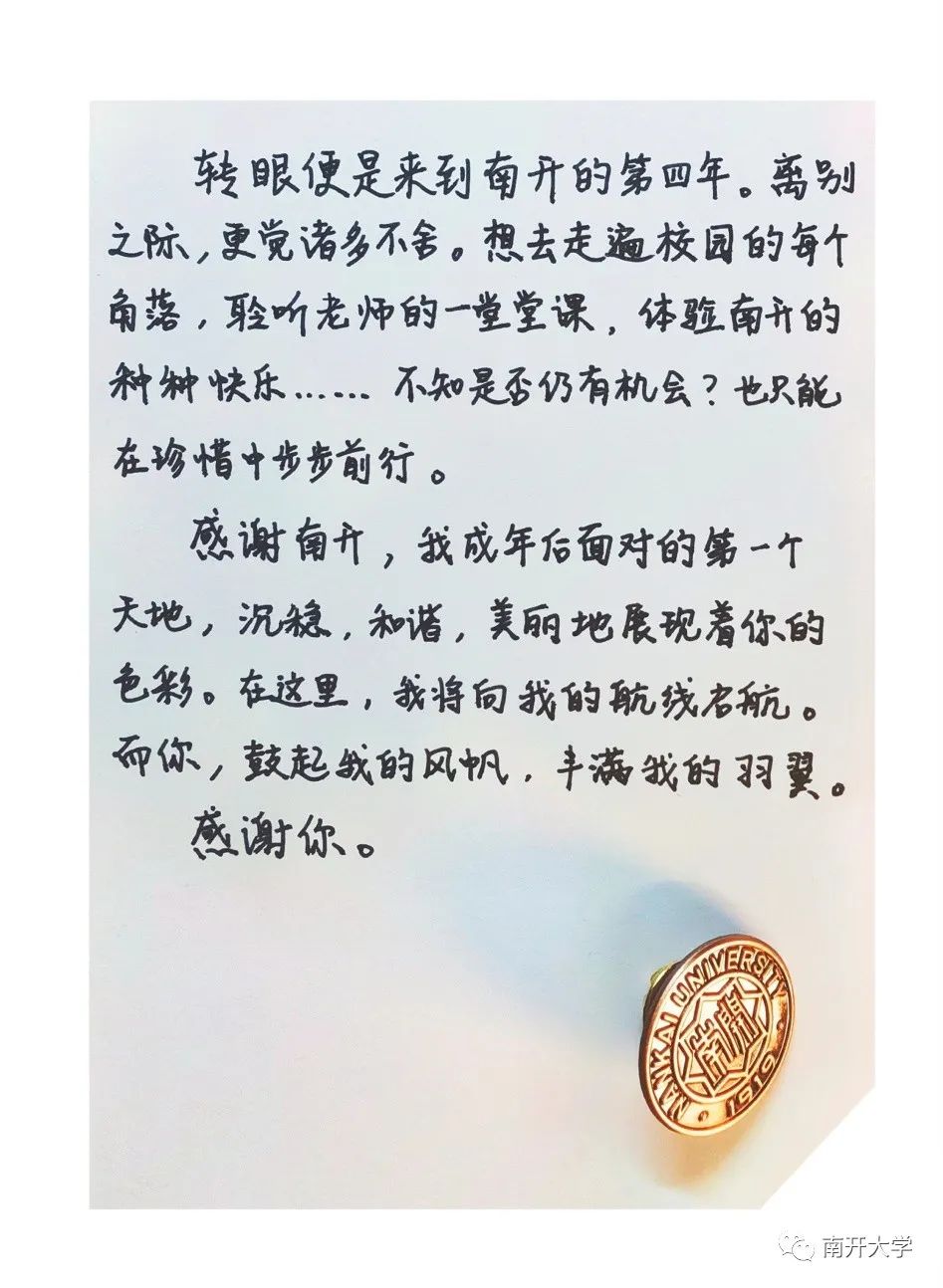 身处这样一个美丽的地方,内心都变得温柔与满足。可爱的南开大学,给予我家一般的温暖,给予我光一样的力量。校园的每个角落,都是我们青春如歌的回忆。谢谢你,南开大学,我们永远爱着你。