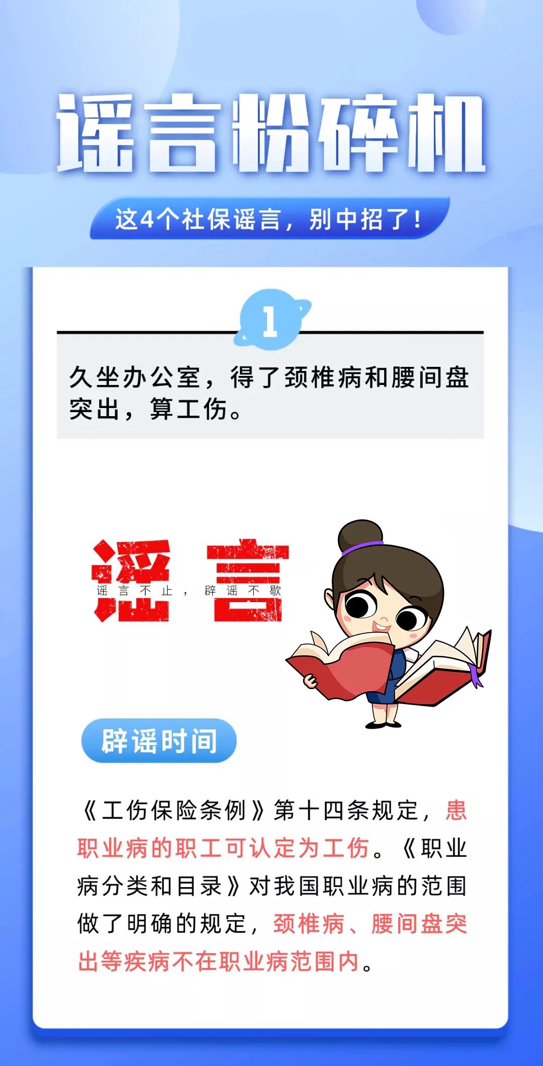 原标题:《久坐办公室得了颈椎病算工伤吗?这4个社保谣言别中招!》