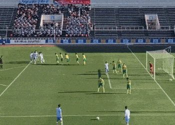 从画面上可以看出,罚出这个任意球前,小禁区内只有一名攻方队员,而在禁区左上角则有五名攻方球员围在一起手拉手转圈,这一幕把对手都看懵了。然而在球开出的一刹那,5名手拉手的球员突然冲向禁区,令防守球员措手不及,“转圈五人组”中的中锋在混战中成功用头球破门。你以为这就完了?另一场比赛的点球大战上,流通经济大柏第二位出场的田口空我上演长达半分钟的助跑破门……