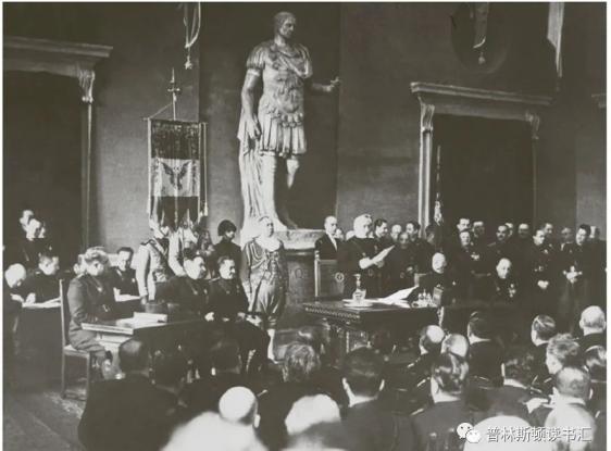 1936年墨索里尼在意大利议会在过去与现在的对话之中,帝王的面容和轶事交相出现,为王朝或现代独裁者的权力戴上了合法性的面纱。罗马帝王的形象为表现国王、贵族和富豪提供了标准模板——至少在19世纪以前,贵族、政客、哲学家、军人和作家的雕塑都身着托加长袍或罗马战甲。直到今天,对那些不惧争议的显贵人物来说,收藏一套罗马皇帝半身像摆在家中,依旧是彰显权势和雄心的有效手段。