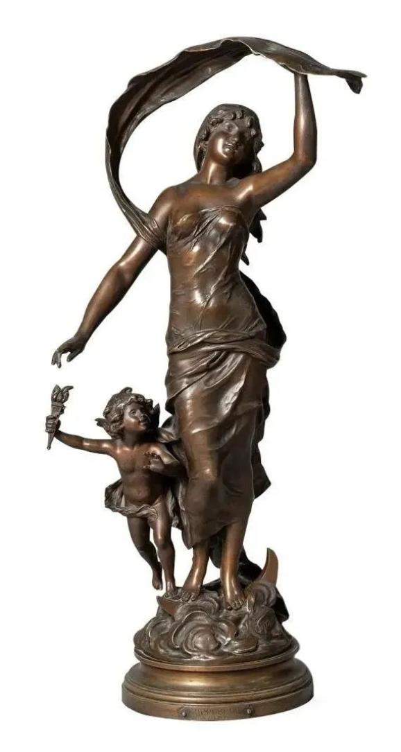 19世纪末20世纪初法国雕塑家August Moreau签名出品