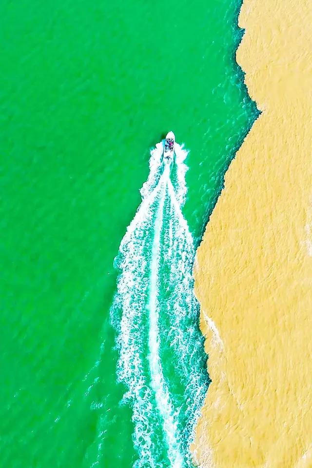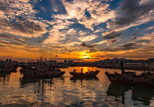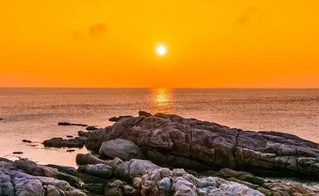 而当太阳钻出水面时,蔚蓝的长空更加高远,碧海也更加开阔。红中泛黄,圆润似玉,广阔天地都为这一轮圆日所照亮,这一刻,使人暂时忘记时空的存在,忘我地暂存于天地间。