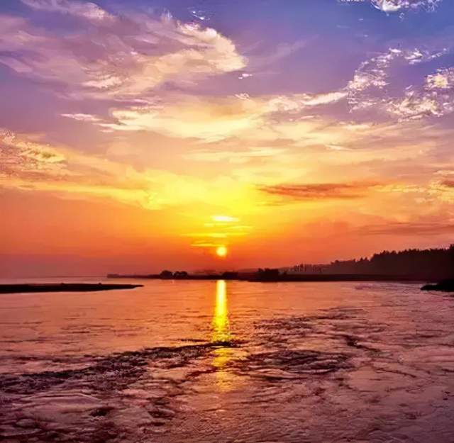 日出之时,东方泛出鱼肚白,在天水吻合的地方,万道彩霞骤然跃出水面。这时候的黄河口格外的静谧,水面微波荡漾,各类水禽鸟儿嬉戏觅食从水面上方掠过,点点渔帆缓缓驶过悠然又静谧,形成一幅天然画卷,别有一番情调。