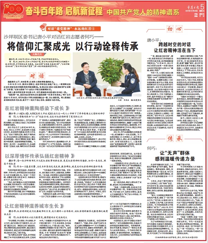 重庆日报深度报道:沙坪坝区委书记唐小平对话红岩志愿者何巧——将信仰汇聚成光 以行动诠释传承