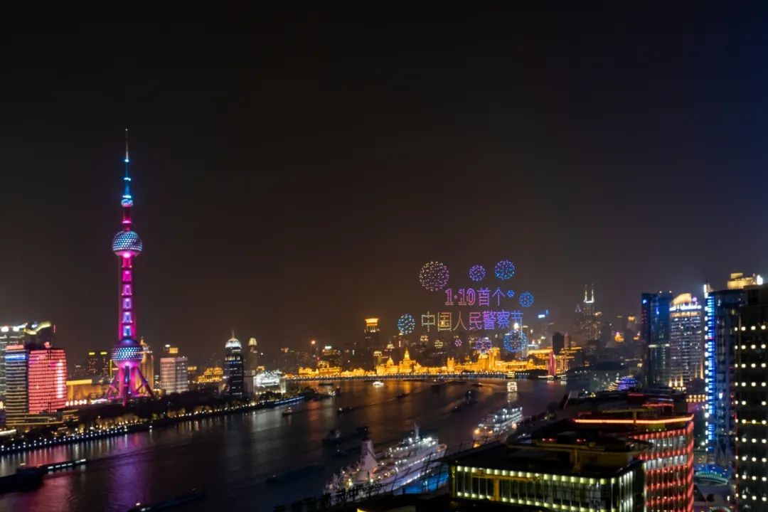 2021年1月10日外滩举办灯光秀,庆祝中国首个警察节
