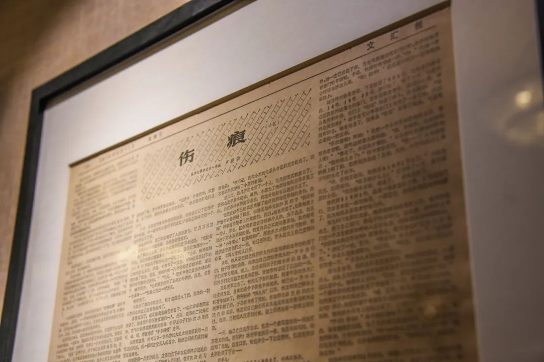 2021年1月21日由上海图书馆中西文化交流研究资料中心与复旦大学新闻学院联合举办的“历史的底稿——十七世纪以来的中外报刊珍藏展”在徐家汇藏书楼开幕。图为展品之一,1978年8月11《文汇报》整版刊发的复旦大学中文系学生卢新华短篇小说《伤痕》