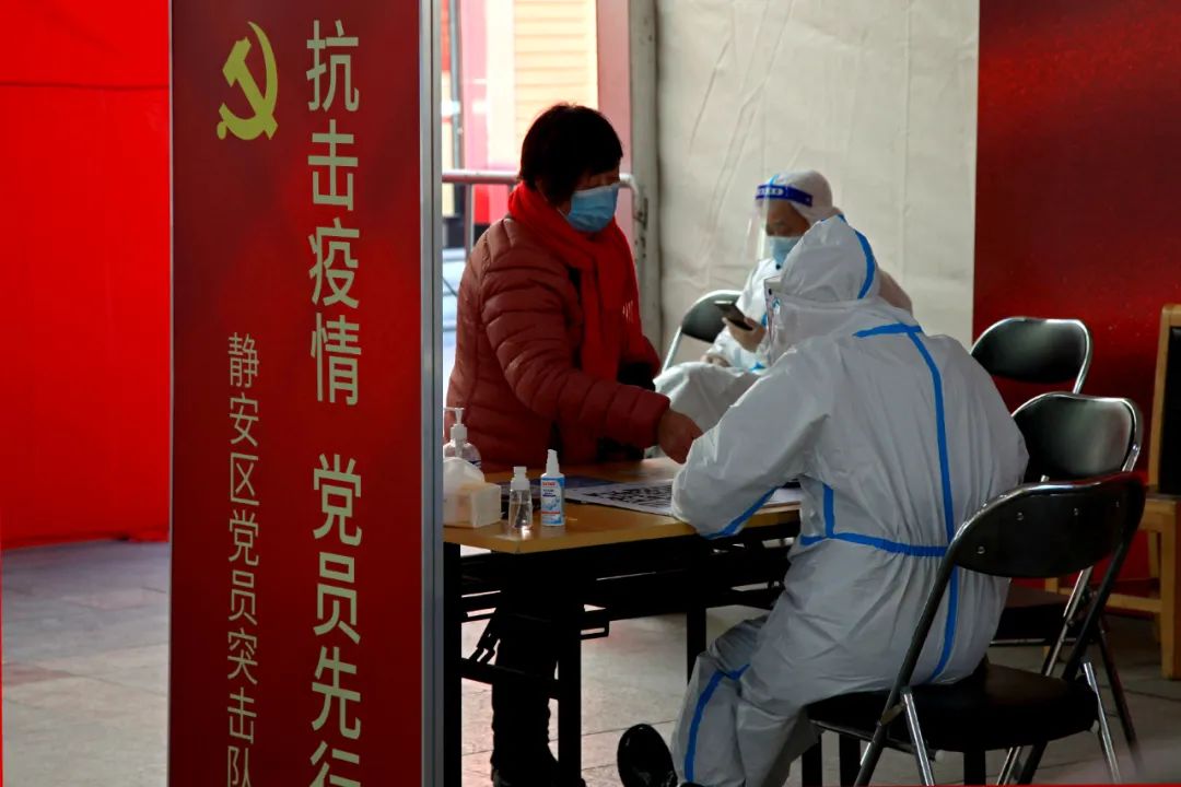 2021年1月29日上海火车站迎来春运高峰。静安区党员、志愿者坚守防疫第一线
