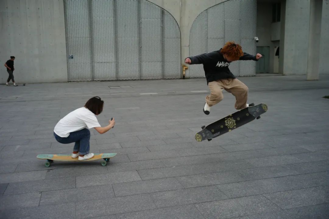 2021年3月15日天气转暖,市民户外活动增多,图为徐汇滨江玩滑板的年轻人