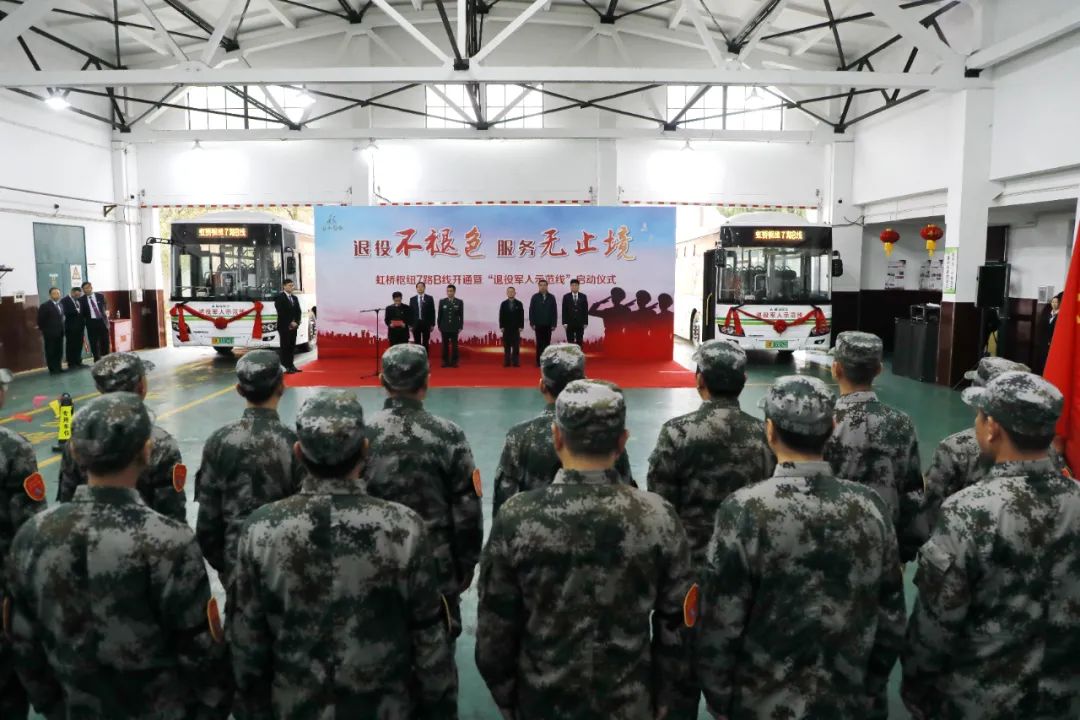 2021年3月19日全市首条退役军人示范公交线——虹桥枢纽7路B线在金山区启运,该线司乘人员全部由退役军人担当