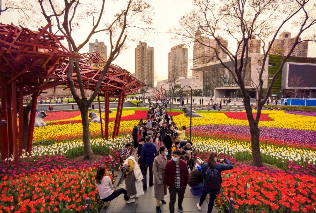 2021年3月25日静安雕塑公园内正在举办“绽放静安·美好生活”静安·新湖郁金香花博会