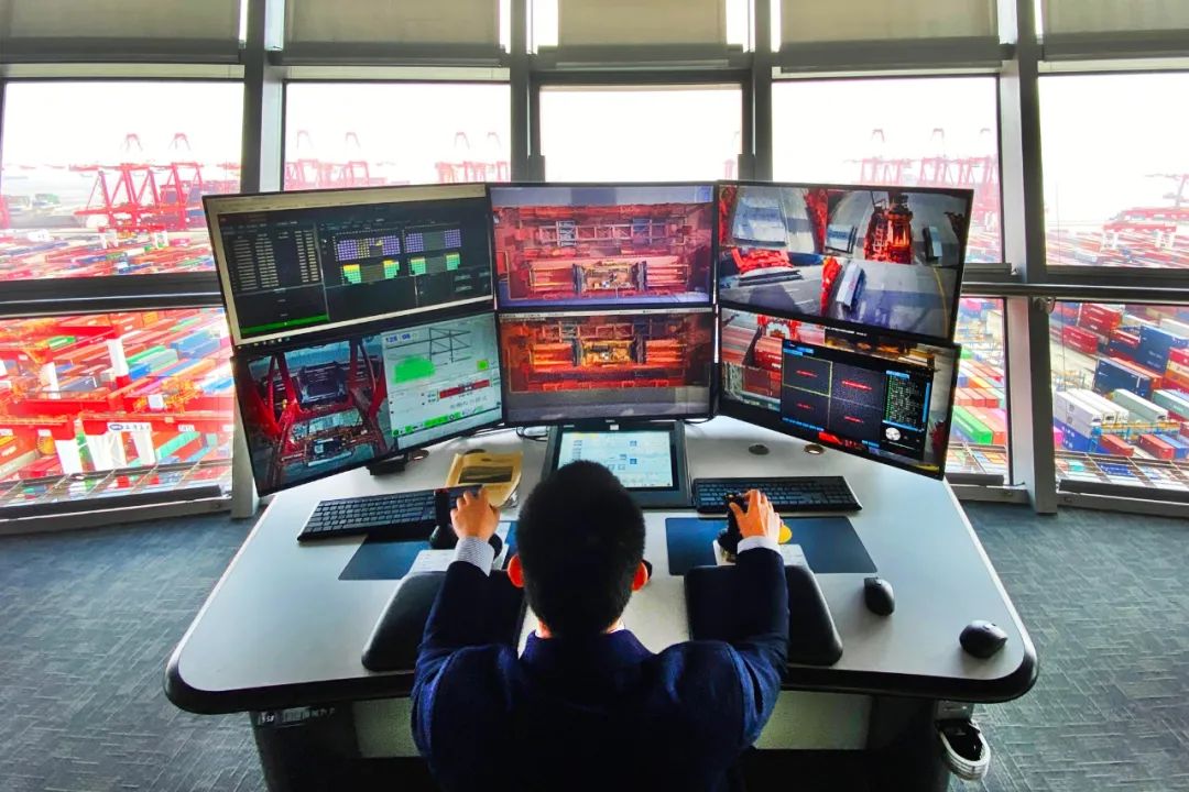 2021年5月22日繁忙的洋山深水港,码头装卸运输已全部采用自主研发的智能系统