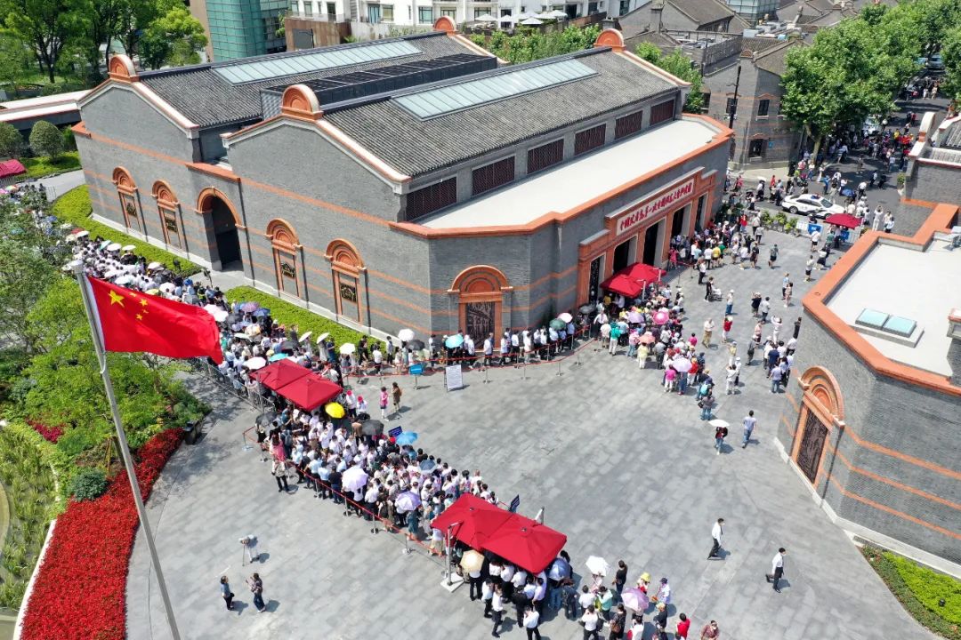 2021年6月3日中共一大纪念馆开馆当日,络绎不绝的参观者有序排队入场