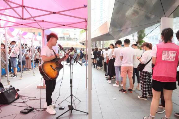 2021年6月28日徐家汇T20大厦旁的新冠疫苗接种点,被称为“最具文艺范”