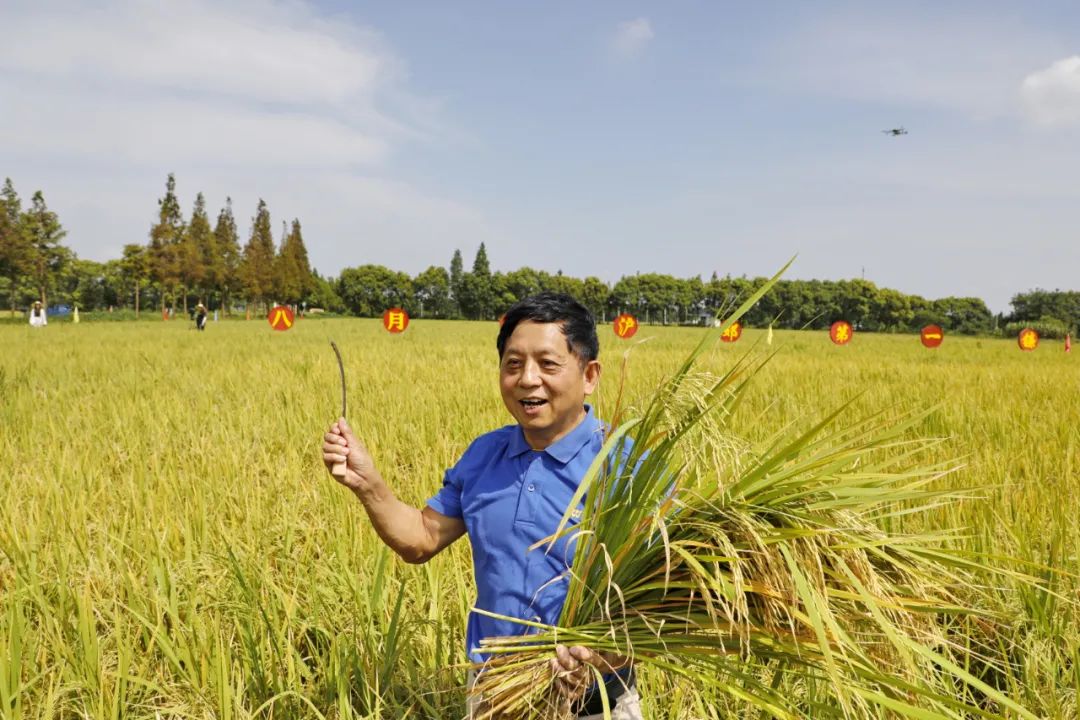 2021年8月18日沪上节水型稻“八月香”开镰收割仪式在金山区廊下万亩良田举行