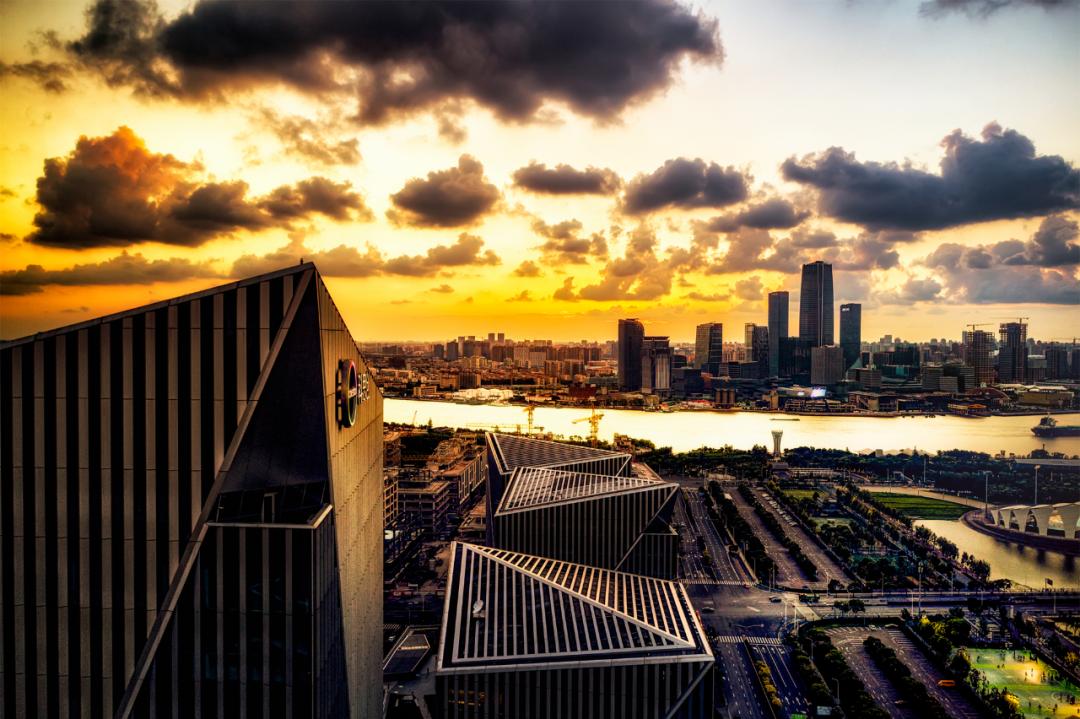 2021年8月20日晚霞映照下的前滩和徐汇滨江西岸