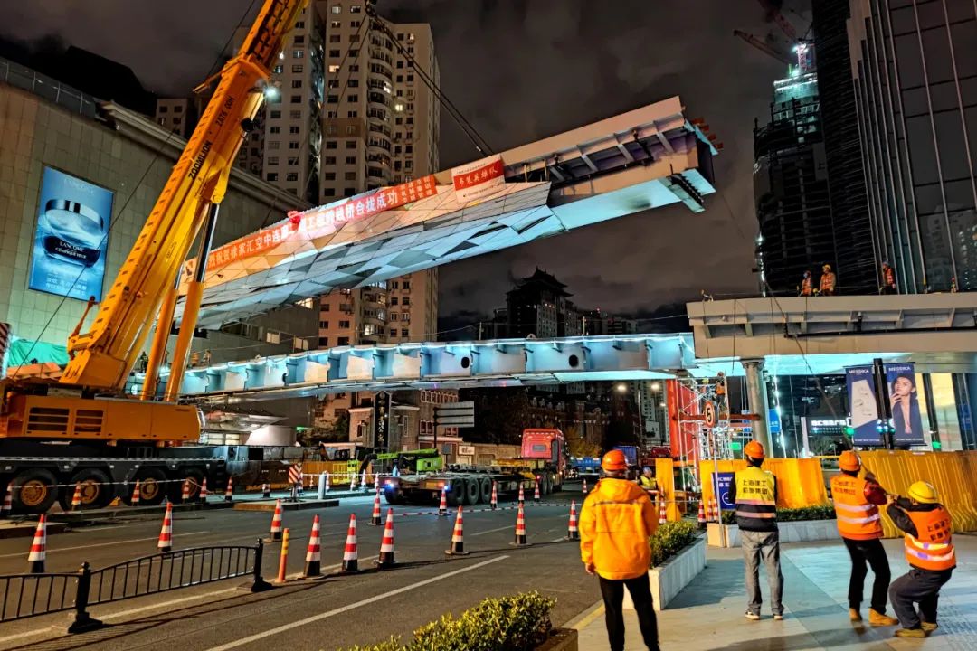 2021年11月28日徐家汇空中连廊二期工程跨线桥合拢成功