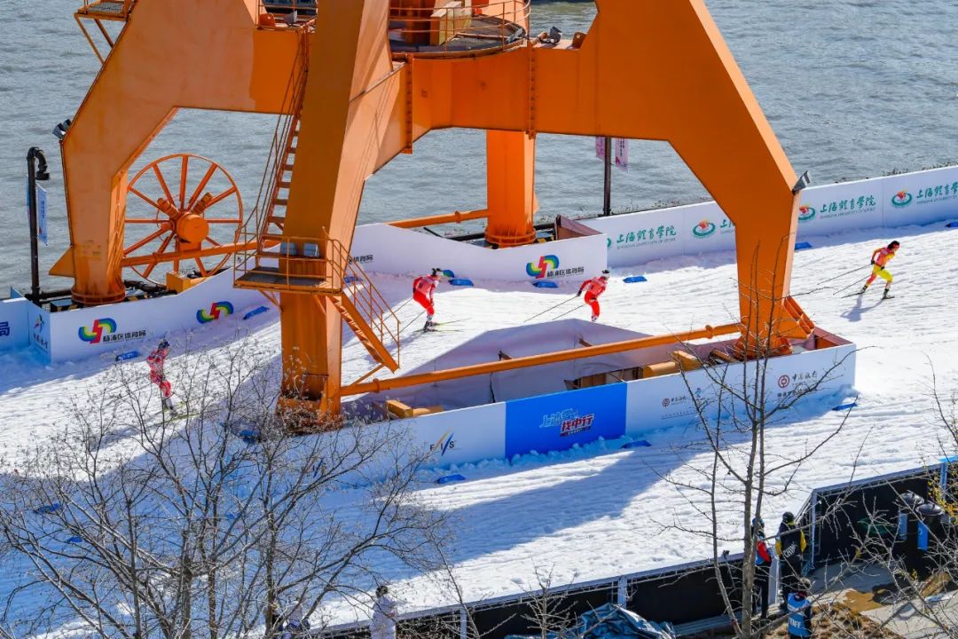 2021年12月18日2021—2022国际雪联城市越野滑雪中国巡回赛上海杨浦站在杨浦滨江绿之丘段开赛。这是上海举办的首项真雪赛事,比赛赛道采用人工造雪的方式搭建在风景宜人的黄浦江畔
