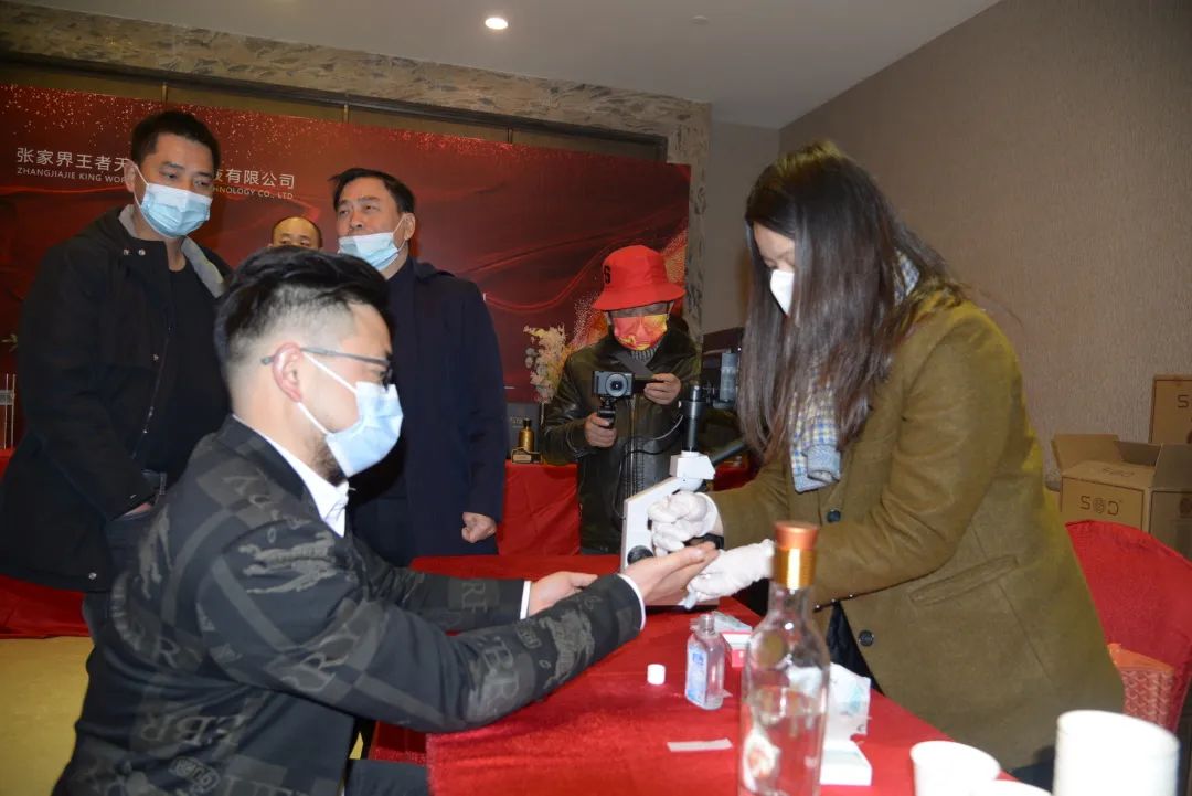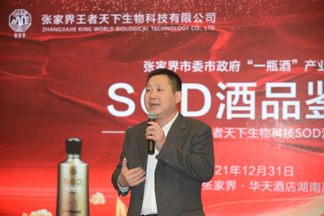 “咱们的酒,配伍SOD酶不改变白酒色泽、口感与品质,将养生酒和高端白酒合二为一,结束喝酒伤肝历史,开启健康饮酒的酒文化新纪元!”,会议现场,谈起SOD酒,张家界王者天下生物科技有限公司董事长吴建民豪情满怀。他说,公司经反复试验,在张家界特有的优质茅岩酶茶中提取了高活性、高品质的SOD酶,再以宜宾优质五粮酿造基酒和茅台镇15年窖藏酱香基酒进行配伍,三大核心技术、四大优势、五大品质具有领先的国际水平,“这是一款有效增强肾动力又能养肝护肾、敢在饮用前后做医学对比的白酒!”吴建民董事长继续说。