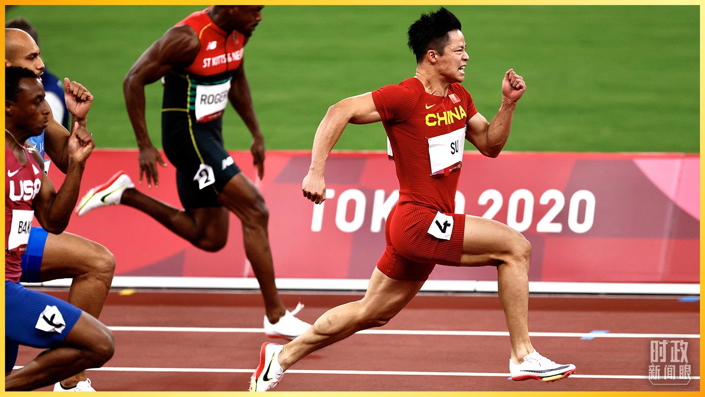 2021年8月,2020东京奥运会男子100米半决赛,苏炳添以9.83秒的成绩获得小组第一晋级决赛,成为首位闯进奥运男子百米决赛的中国人。 视觉中国 图
