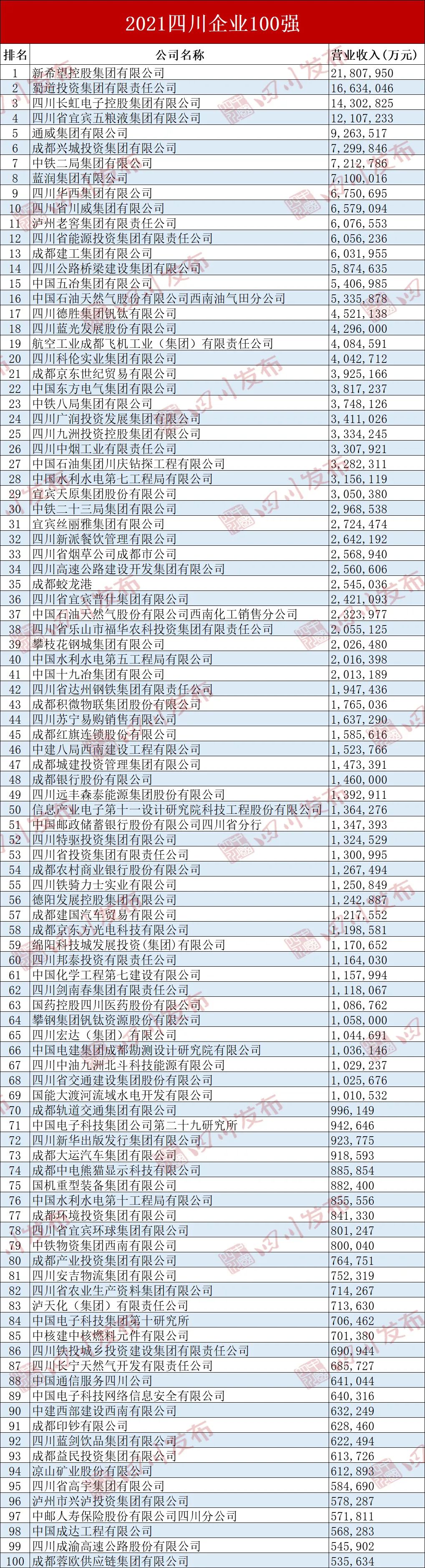 2021四川100强企业名单发布,泸州多家企业上榜!