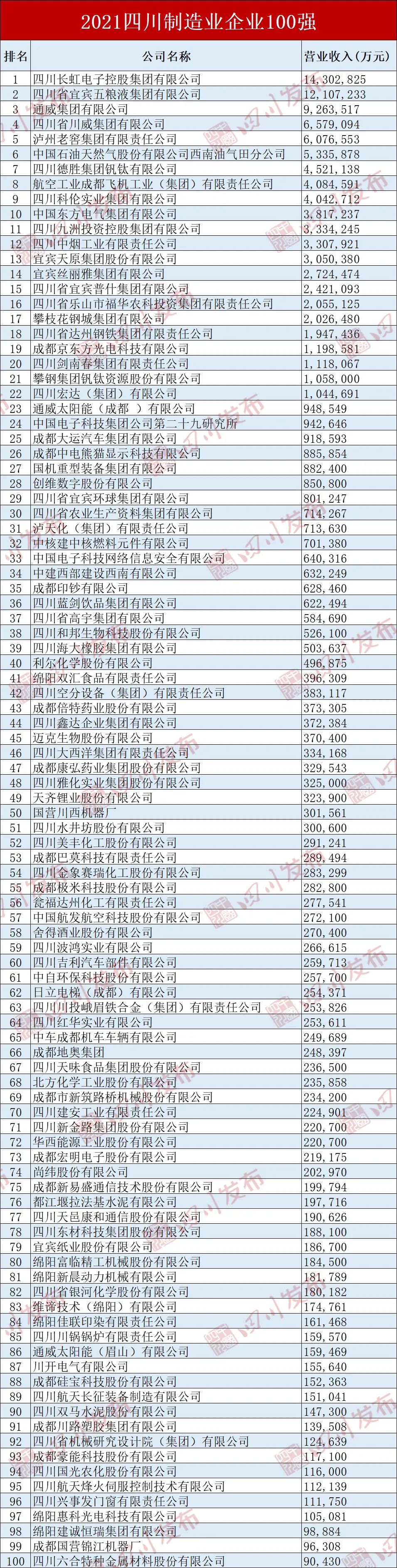 2021四川制造业企业100强