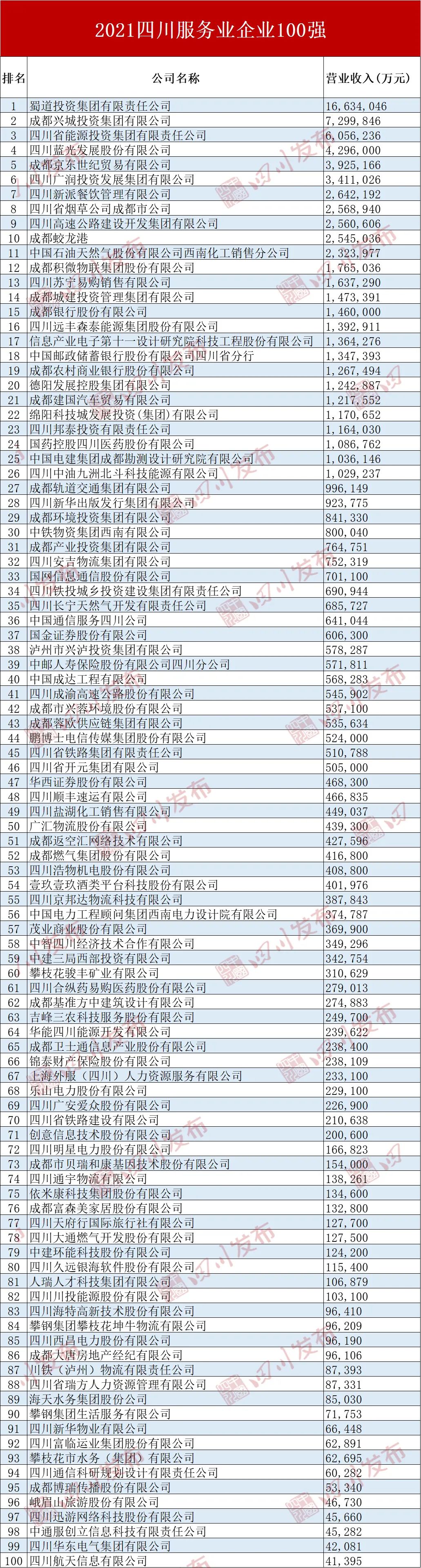 2021四川服务业企业100强