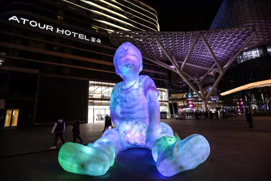 位于上海爱琴海购物公园南广场1号门前,高达6米的《追光少年》,以天真好奇、仰望星空的孩童姿态为造型,将“少年犹如一颗种子,勇敢地冲破泥沙,奔向光明”的诗意表达具象化,以艺术手法细致刻画了一个对世界充满好奇与思考的“追光少年”形象。