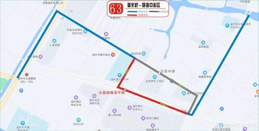 由御史桥首末站始发,途经耐宝路、龙飞路、船厂路、钱江路、雁荡东路、兰江路、温州大道、文昌路(返行)、雁荡中路(返行)、富春江路、机场大道、会展路、学院东路、汤家桥路、新蒲路、丰源路、汇源路、宏源路、新城大道、锦绣路、西山东路、西山路、站前路、金蟾大道、国鼎路、半塘路、古岸路、沉木桥街、瓯海大道辅道瓯海段,至瓯海中心区首末站(往返)。取消站点:玉苍中路(返行)。