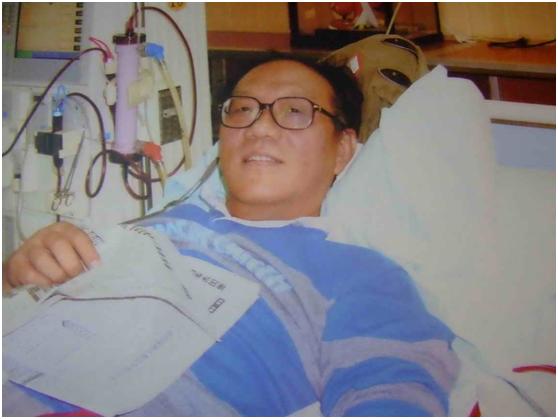 他躺在透析室的冰冷病床上,看着鲜红的血在透析器里缓缓地从自己的身体里流出来,再回到自己的身体里去。