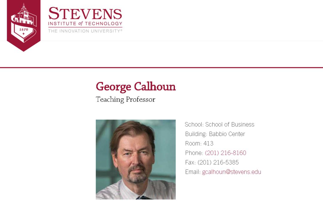这个美国教授名叫George Calhoun,是美国斯蒂文斯理工学院(Stevens Institute of Technology)的一名授课教授,其本职专业是无线通讯科技和资本市场融资。
