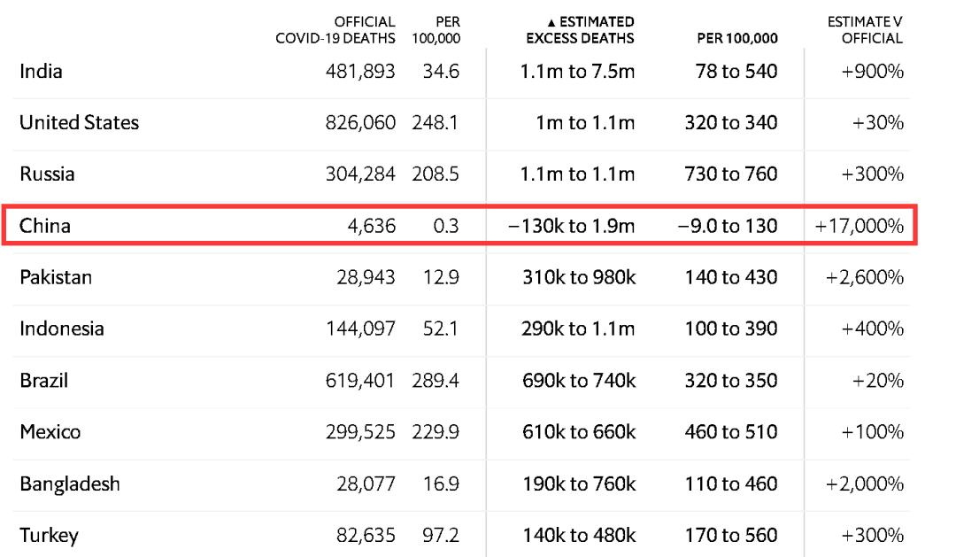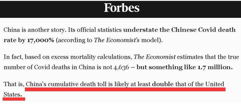 不过,这位教授却于2022年1月2日在美国新闻资讯网站福布斯上撰写了一篇“分析”中国新冠疫情死亡人数的文章,并抛出了一个让全世界看来都觉得荒诞的说法:中国的新冠疫情“实际死亡人数”不仅多于美国,更达到了170万人。