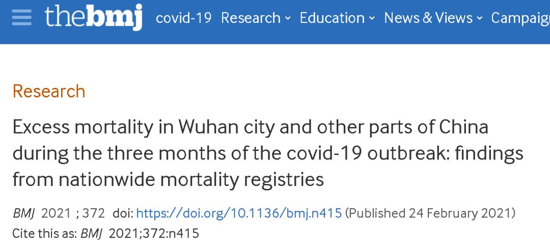 最后值得一提的是,去年2月,中国官方的疾控中心曾经在一篇论文里,对武汉在2020年前三个月里的全部死亡人数进行过细致的对比分析。当时耿直哥也在我们《环球时报》的微信公众号等平台报道了这篇论文的内容。