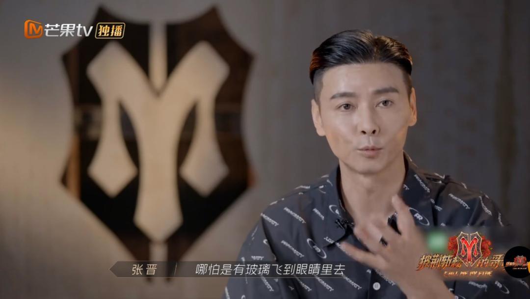 这才是真正的打戏教学。/《水月洞天》2021年《披荆斩棘的哥哥》节目里,张晋在《给电影人的情书》舞台中本色出演,呈现了一位武打演员在片场的拍摄状态——导演喊开机后,他一个箭步冲了上去,直直撞上了眼前的一面玻璃,玻璃渣碎了一地,张晋则熟练地翻滚落地,直到导演喊“卡”,应声站起来大喊:“我没事!”