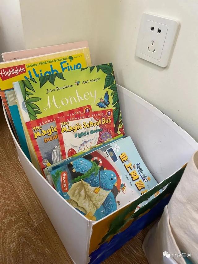 英语分级读物,种类繁多。读过的分级我没有搁置起来,而是尽量放在孩子够得着的地方,方便随时翻看。下面这个牛奶盒放牛津树尺寸大小刚好合适,坚果盒虽适合度差了一些,但也不影响使用。