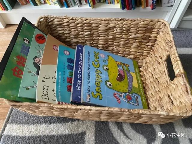 我们还有一个小竹筐,作用也相似,用来收纳从线上图书馆借阅的绘本,读完及时归位。目的也是在到期该归还的时候,可以不再费功夫到处找。