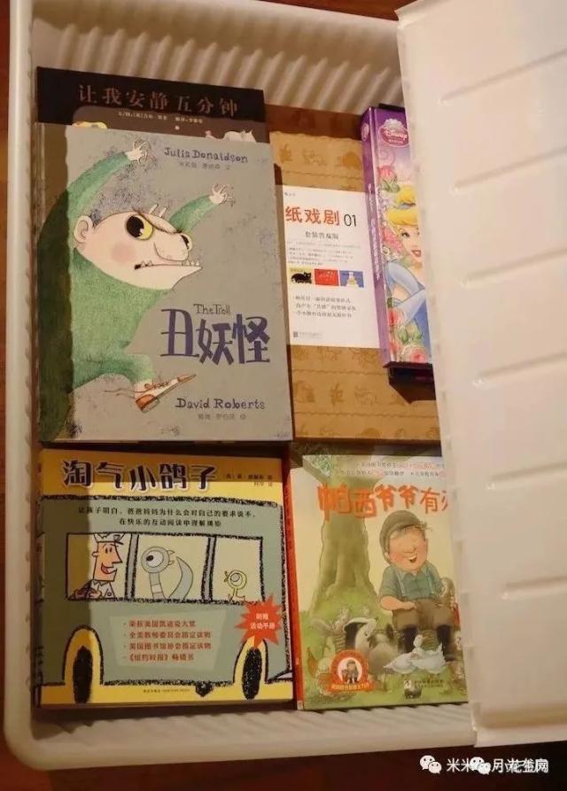 面膜收纳盒的尺寸也很多,我用小尺寸的装入两套30册旅行版绘本。如果家里有此类单册数量多的平装套装,可以考虑透明面膜盒。