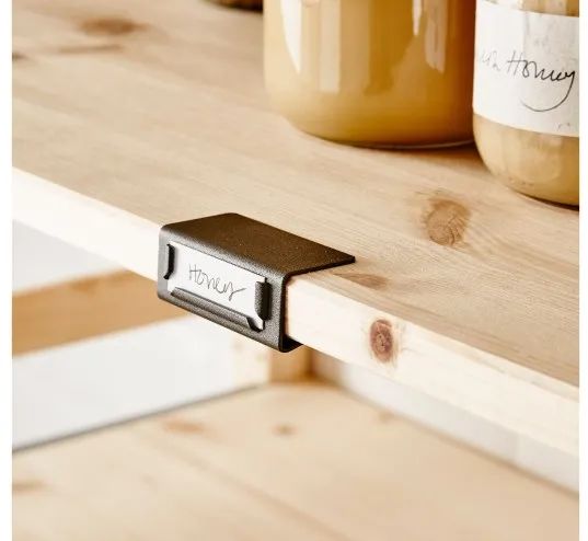 给书橱贴上标签,明确每一类内容的位置。标签可以贴在书柜隔板的立面,对应相对内容书籍的摆放位置固定: