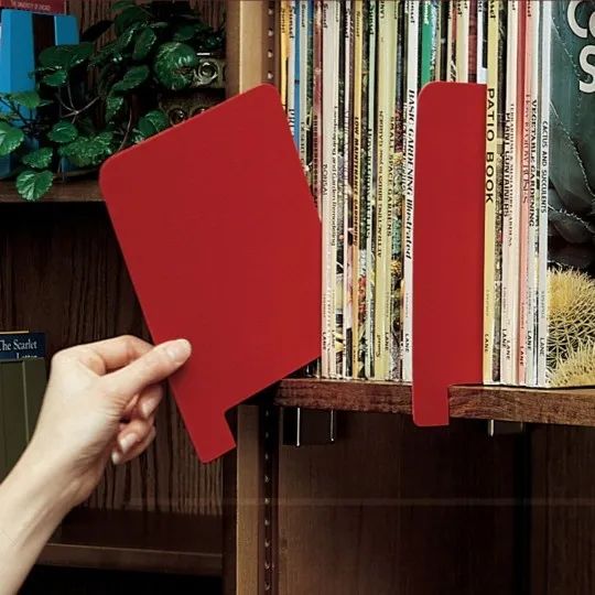这类图书隔断的材质很结实,可以长时间反复使用,如果给隔断都加上标签,分类就可以做得更细致了。