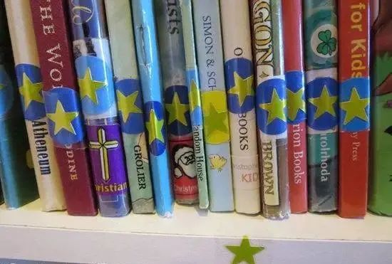第三,书脊贴纸管理分级读物利用一些符号如五角星,圆形,三角形贴纸,或者英文26字母贴纸,又或者0-9数字贴纸等等,贴在书籍的书脊底部,借此分类书籍。这类方法多用于级别分级。