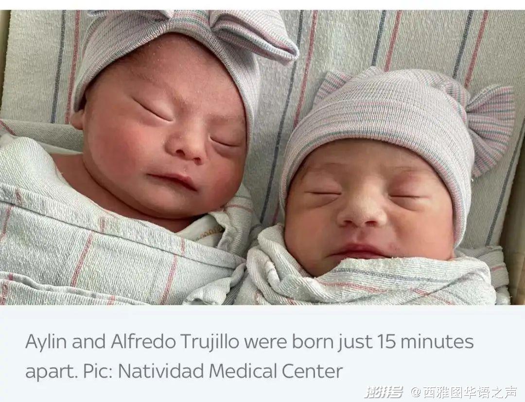 15分钟后,也就是2022年1月1日午夜,她生下了阿尔弗雷多的异卵双胞胎艾林。据医疗中心介绍,在不同年份出生的双胞胎极为罕见,几率估计为200万分之一。
