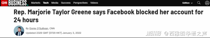 5、美媒:美国女议员格林被推特永久封号后,又被脸书禁言24小时
