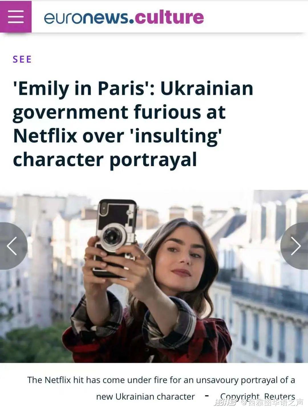 热播美剧《艾米丽在巴黎》因将剧中乌克兰人刻画为爱偷窃的贼而引发乌观众不满。英国广播公司(BBC)3日报道称,乌克兰文化部长特卡琴科表示,他已就《艾米丽在巴黎》第二季中乌克兰人角色刻画问题向流媒体平台网飞投诉。