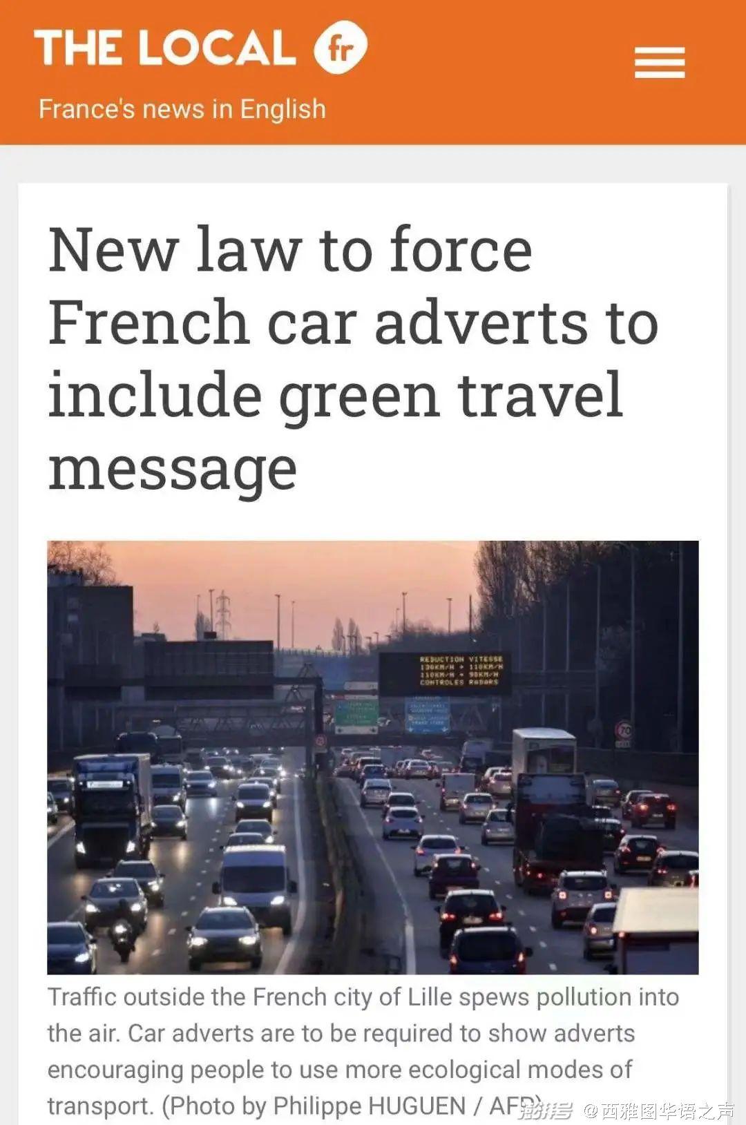 13、汽车广告建议不开车?法国出新规鼓励民众选用更环保出行方式