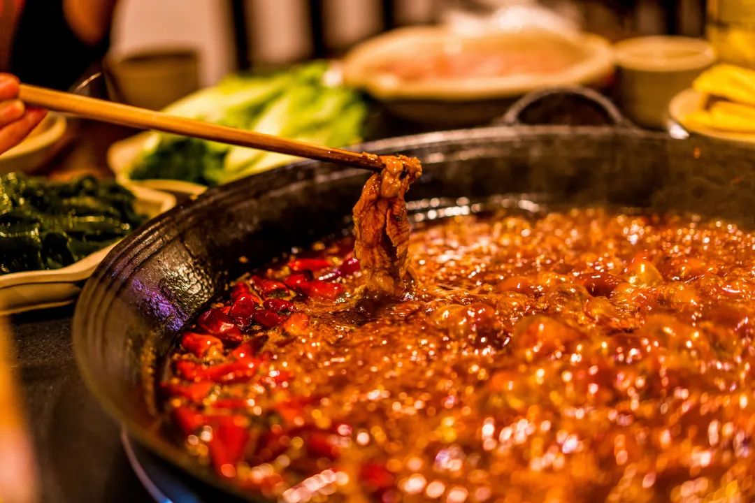 但麻辣火锅吃多了难免上火。智慧的巴蜀人民会将老白茶、老鹰茶、普洱等倒入锅中一同煮,茶叶性凉清润,可以中和麻辣锅底的热性。